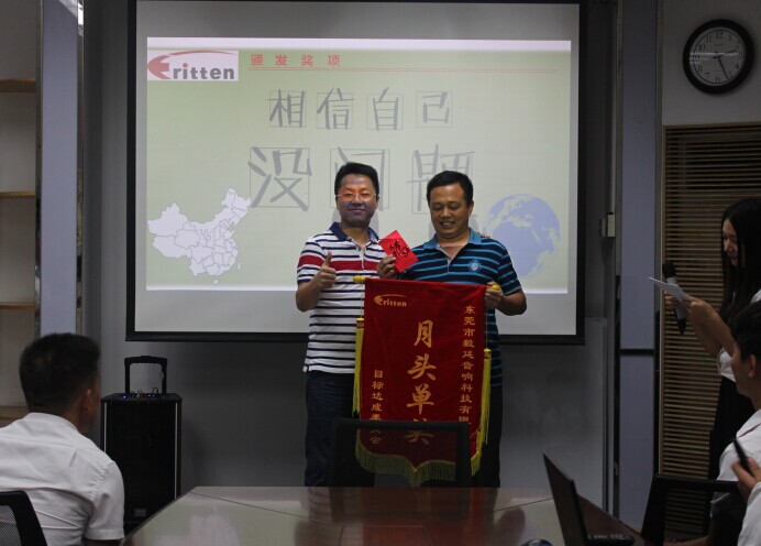 男兒當(dāng)自強(qiáng),責(zé)任勇?lián)?dāng)。作為毅廷公司的中流砥柱,奮勇?tīng)?zhēng)先,開(kāi)拓創(chuàng)新,他的名字會(huì)銘刻在毅廷的功勞薄上!接下來(lái)為大家頒發(fā)的是毅廷7月月樶高銷(xiāo)售額獎(jiǎng)的獲得者,他以57萬(wàn)的銷(xiāo)售額獲得7月月樶高銷(xiāo)售額獎(jiǎng),他就是帥氣陽(yáng)光的外貿(mào)部銷(xiāo)售員朱劍友