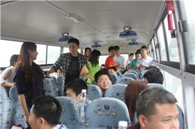 車漸漸的開起,兩位主持人在車開往高速路上時,車平穩(wěn)了,人就活動起來了,都踴躍參與其中,輸了那位同事10秒鐘吃一根香蕉,游戲火熱中···↓