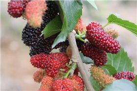 桑椹既可入食,又可入藥,中醫(yī)認(rèn)為桑椹味甘酸,性微寒,入心、肝、腎經(jīng),為滋補(bǔ)強(qiáng)壯、養(yǎng)心益智佳果。具有補(bǔ)血滋陰,生津止渴,潤腸燥等功效,主治陰血不足而致的頭暈?zāi)垦?,耳鳴心悸,煩躁失眠,腰膝酸軟,須發(fā)早白,消渴口干,大便干結(jié)等癥。桑子綠色變紅色再黑色,是一個漫長的過程↓