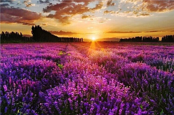 普羅旺斯暮色:夕陽(yáng)與紅霞漫天散開(kāi),光影糅合大片花海,只能用震撼形容了!銀色、紫色、金色、綠色、紅色層次分明,勝似天上人間!