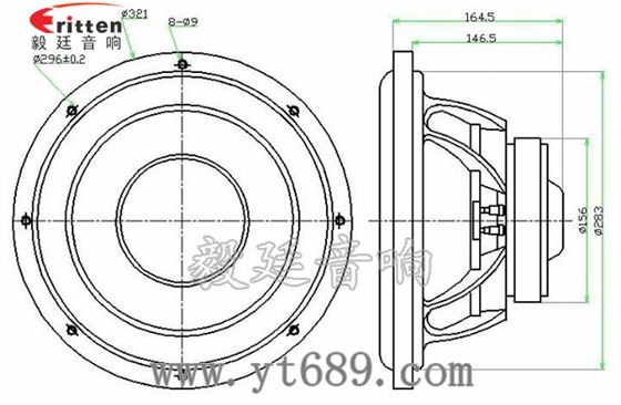 毅廷音響8''250w 重低音喇叭正反面