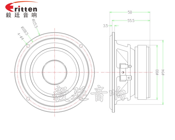毅廷音響4寸高端品牌重低音喇叭正反面