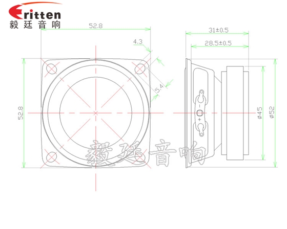 53mm方形鐵盆架外磁全頻喇叭,采用高密度鐵氧體,性能穩(wěn)定,音色自然;