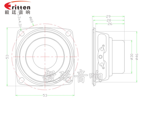 描述:方型鐵盆架橡膠邊紙盆內(nèi)磁全頻53mm20芯8w藍(lán)牙音箱喇叭;