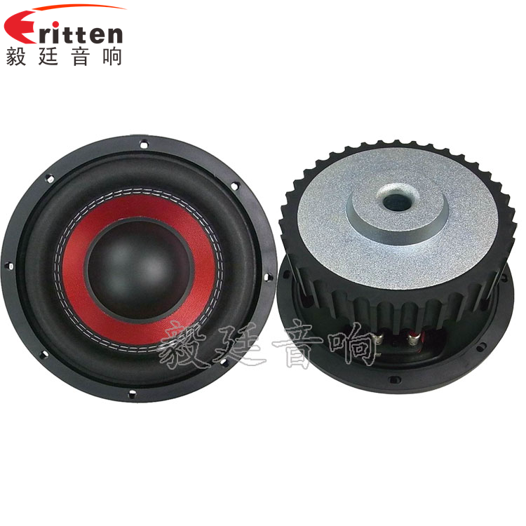 8寸圓形鐵盆架外磁重低音喇叭,采用了高性能鐵氧體,磁性強,動力足,外帶磁鋼套;