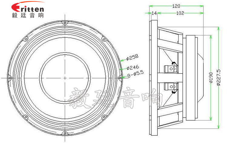此款優(yōu)異用于10寸中低音汽車音響喇叭,舞臺(tái)音箱單元上,聽感厚實(shí)、音色飽滿,選喇叭首選東莞毅廷喇叭工程師百分之五十時(shí)間研發(fā)新工藝新技術(shù),百分之五十為客戶提供技術(shù)支持。