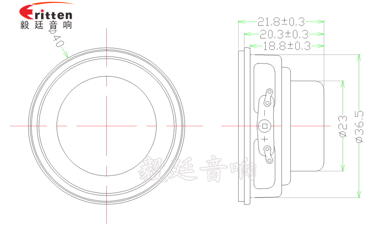 40mm圓形鐵盆架內(nèi)磁全頻喇叭,采用了體積小磁性強(qiáng)的永久磁磁鋼,釹鐵硼,音色清晰。