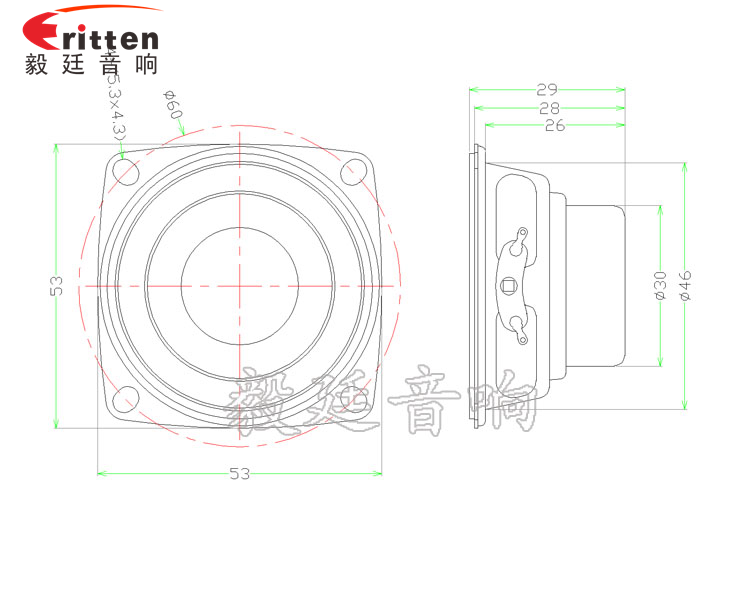 45mm方形鐵盆架內(nèi)磁全頻喇叭,采用高性能稀土高強(qiáng)磁,靈敏度高,磁性強(qiáng),音色清晰;