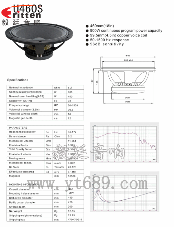 此款18寸450瓦舞臺音響重低音喇叭,優(yōu)異用于大型用于舞臺音箱,KTV音箱、演唱會音箱、廣場音箱上,強(qiáng)勁音效超乎想象,足以讓搖滾發(fā)燒友為之瘋狂。